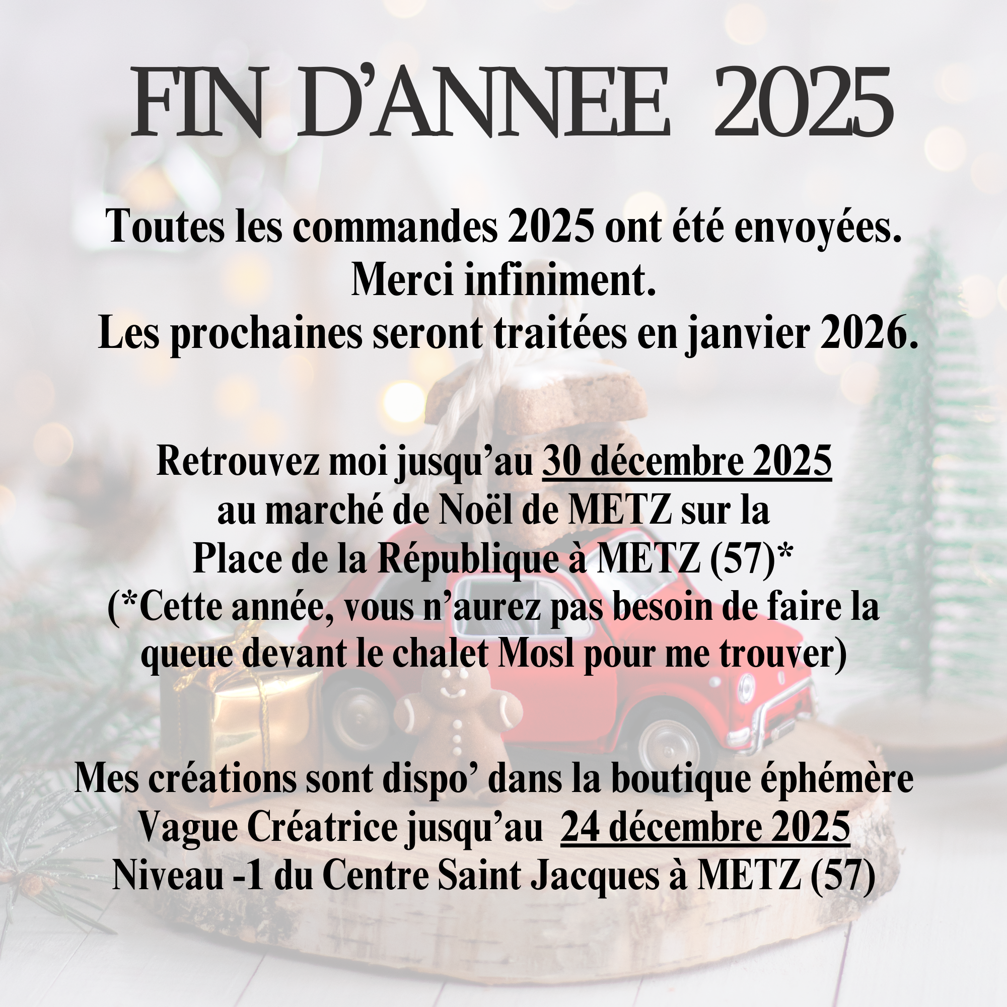 Vous êtes sur le secteur de Metz (57), vous souhaitez récupérer votre commande. Enregistrez le code CLICANDCOLLECT avant de valider votre panier. Je vous recontacterais pour la remise en mains propres.